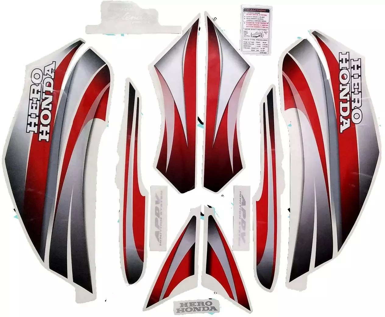 Combo of Sticker’s Products- Headlight Visor Sticker, Visor Glass ( If Applicable ),Front Mudguard, Side Panel,Tail Panel Sticker,TPFC ( if Applicable),Engine Guard ( if Applicable),Nose ( If Applicable ),Trim ( If Applicable ),Side Wings ( If Applicable