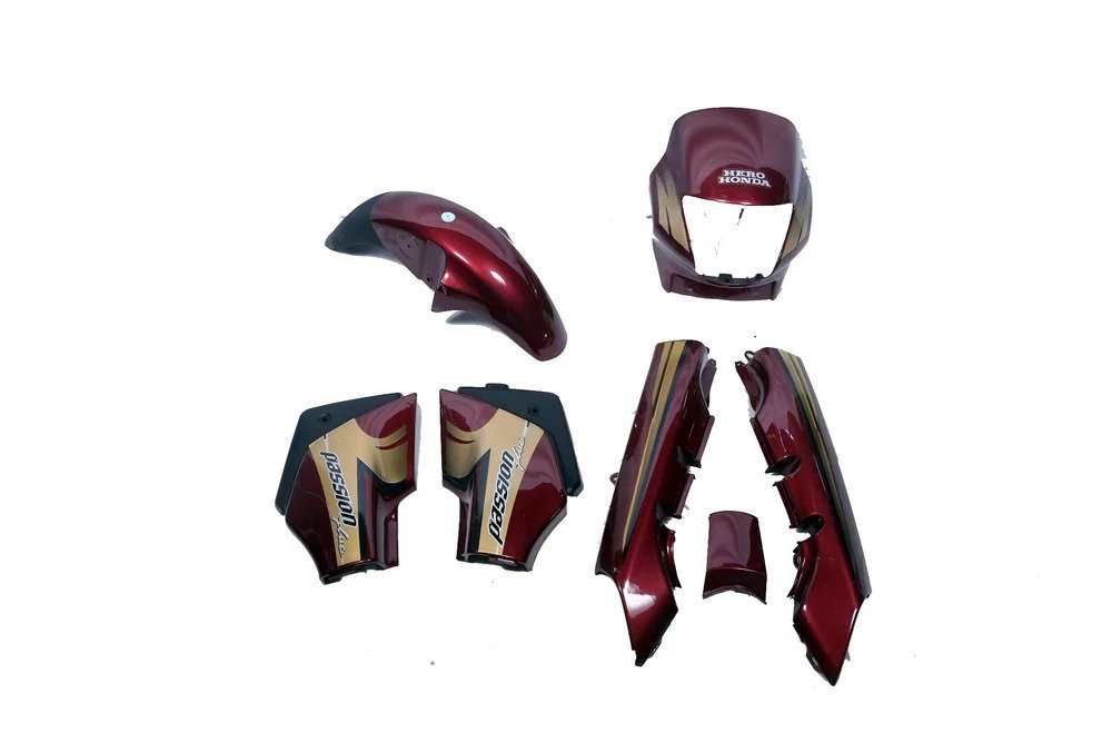 Here’s a full description for a full fiber body kit for a Passion Plus motorcycle in maroon and gold: